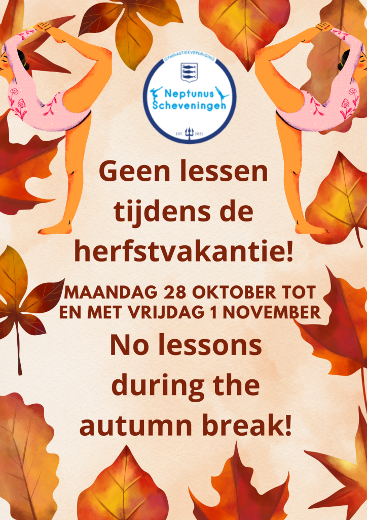 Er zijn geen turnlessen voor de recreatie in de week van maandag 28 oktober tot en met vrijdag 1 november, vanwege de herfstvakantie.